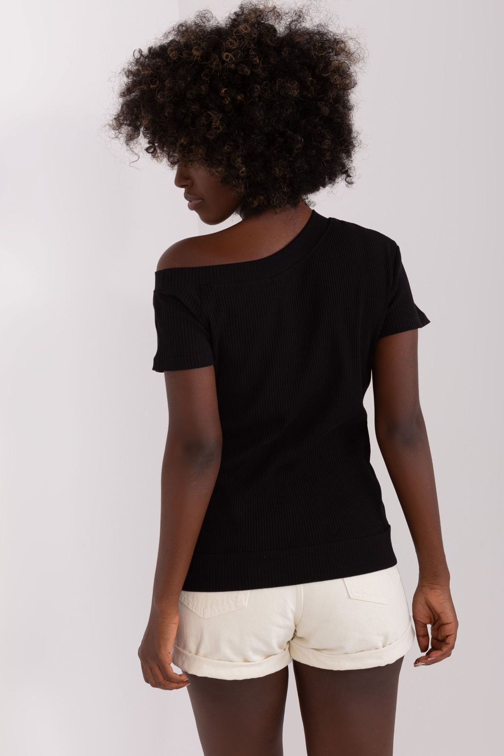 Blouse met korte mouwen en een symmetrische halslijn. Blouse met een getailleerd model, gemaakt van geribde stof.