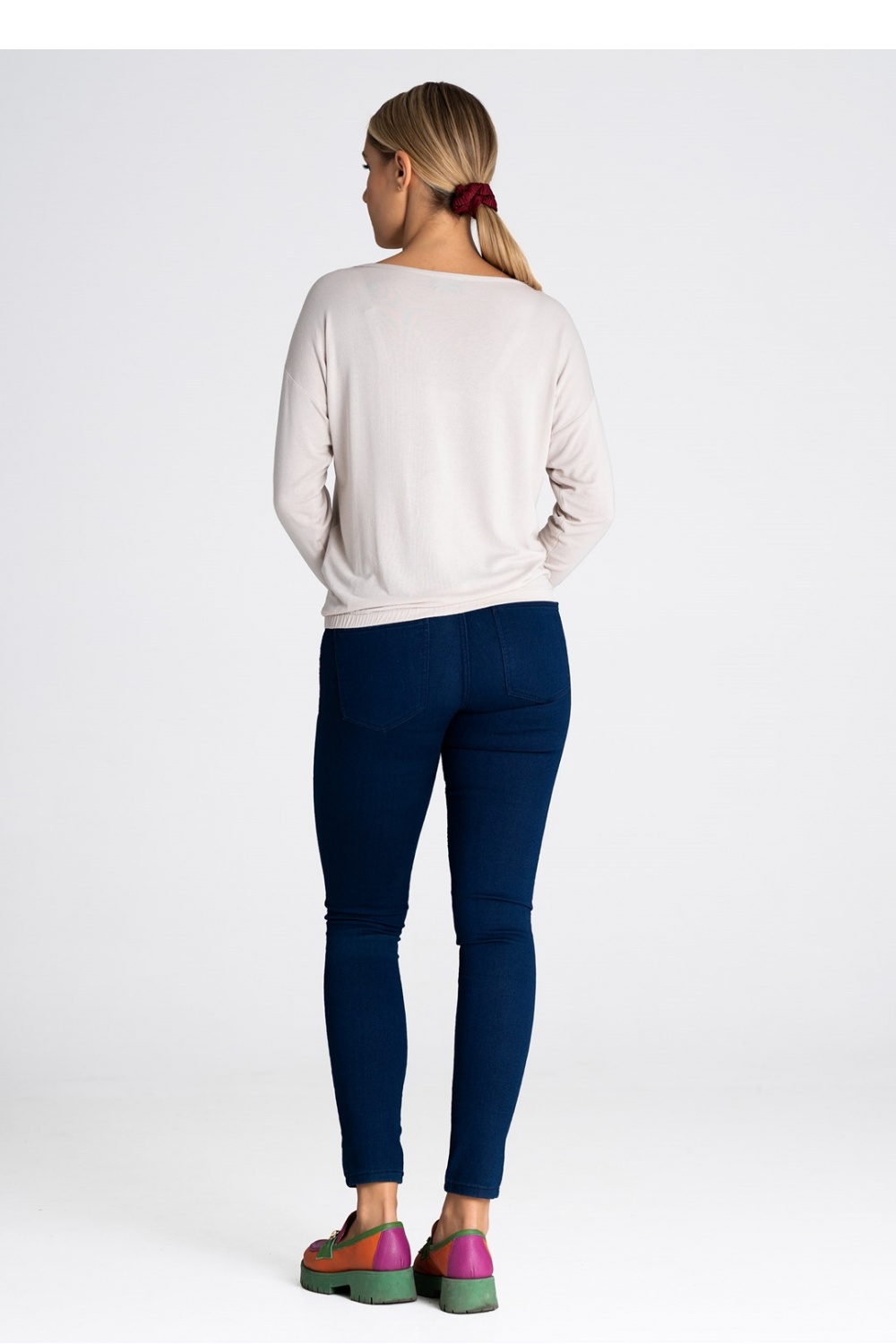 Blouse van fijne stof met lange mouwen en een ronde halslijn. Los model met schouders. Elastiek onderaan.