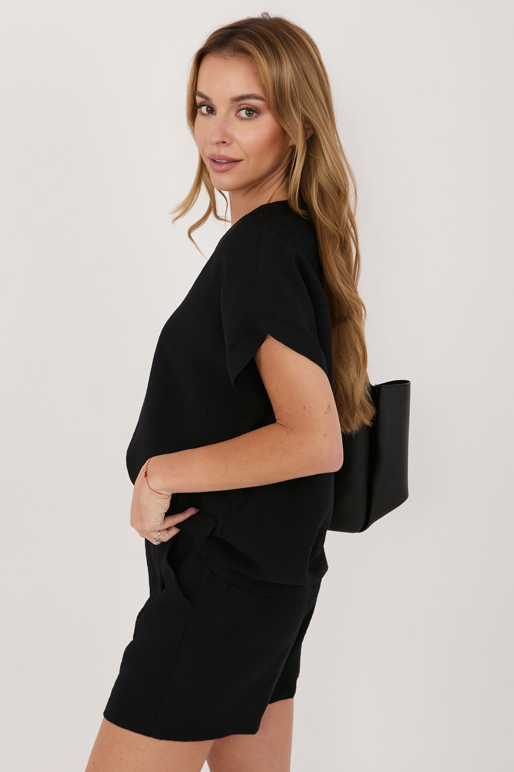 Een elegante en tegelijkertijd comfortabele damesblouse is een uitstekende keuze voor dagelijkse styling. Gemaakt van een hoogwaardige mix van viscose en polyamide, biedt het lichtheid, ventilatie en comfortabel dragen gedurende de hele dag. Het model met standaard lengte en korte mouwen is perfect voor warmere dagen, en biedt bewegingsvrijheid en een universele uitstraling. Het gladde materiaal benadrukt het minimalistische karakter van de blouse, waardoor je het gemakkelijk kunt combineren met veel kledingstukken. Aan de voorkant bevindt zich een decoratieve flap die het geheel een subtiele elegantie geeft en het model onderscheidt van klassieke stijlen. De V-hals gecombineerd met de opstaande kraag geeft een moderne en stijlvolle touch, en benadrukt op een mooie manier de hals. De blouse heeft geen sluiting, wat het gebruiksgemak vergroot. Ideaal voor dagelijks gebruik naar het werk, voor vergaderingen of een wandeling, past perfect bij zowel broeken als rokken.