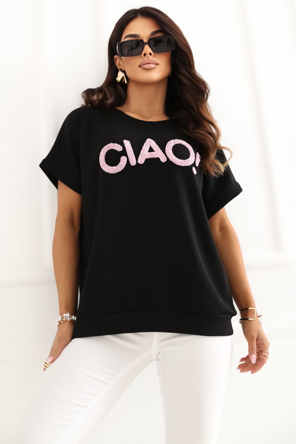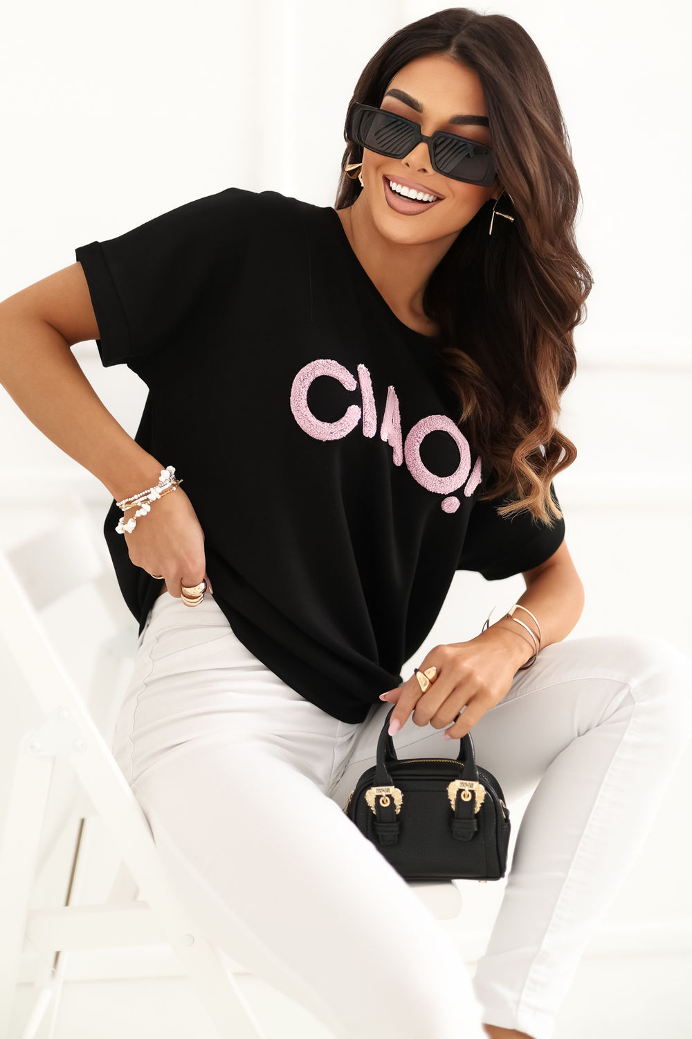 Het dagelijkse shirt met een universeel karakter dat perfect past bij vele outfits. Het model is voorzien van een contrastrijke tekst aan de voorkant, wat het geheel een moderne en relaxte uitstraling geeft. Gemaakt van een aangename mix van viscose en elastaan, zorgt voor comfortabel dragen en een lichte pasvorm. De standaard lengte en korte mouwen maken het shirt perfect voor warmere dagen of als basis voor andere kledingstukken. Het heeft een klassieke ronde hals en heeft geen sluiting, wat haar comfortabele, casual karakter benadrukt.