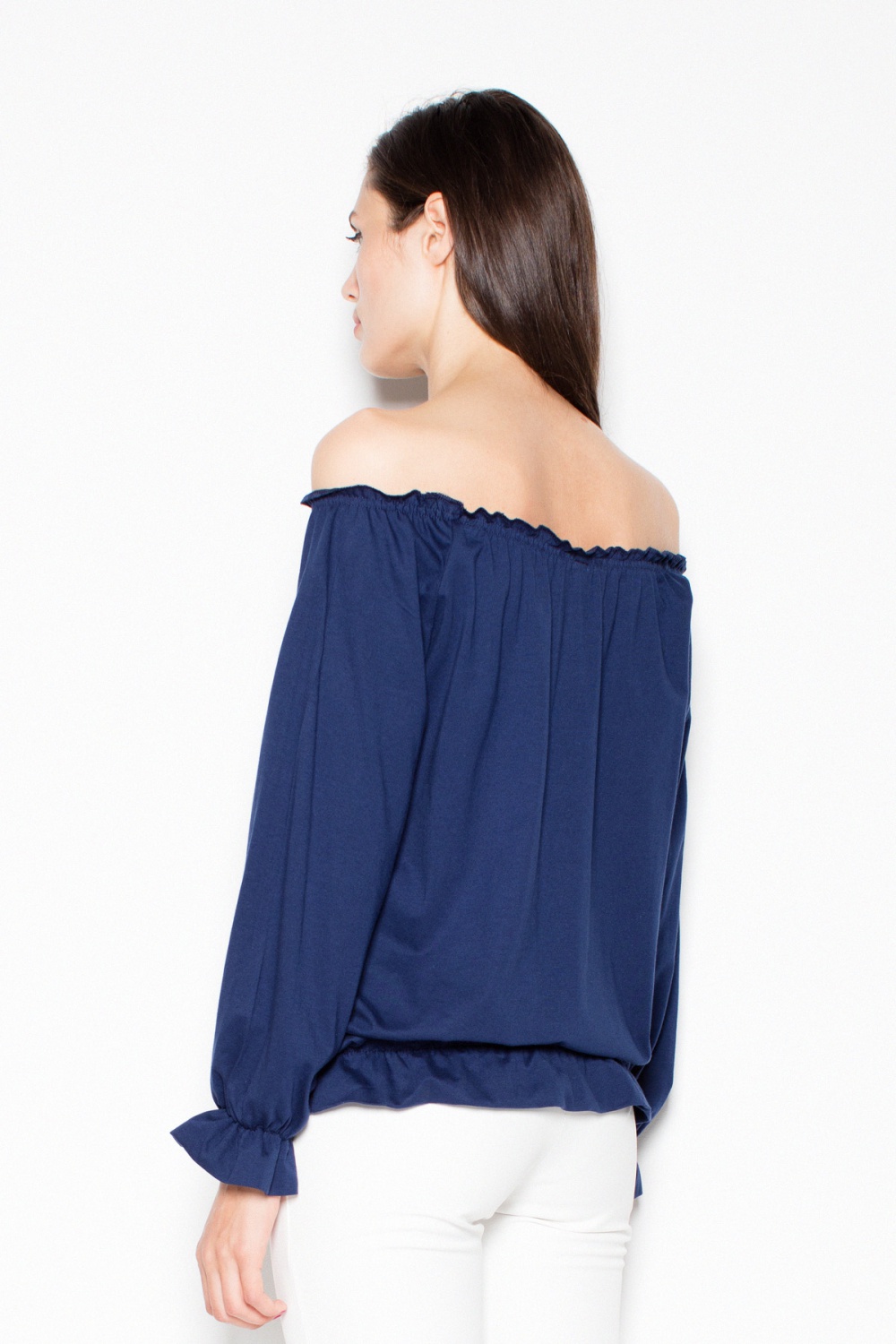 Bloes met lange mouwen. Versierd met kreukels. Losjes vallend model, ideaal voor alledaagse styling.