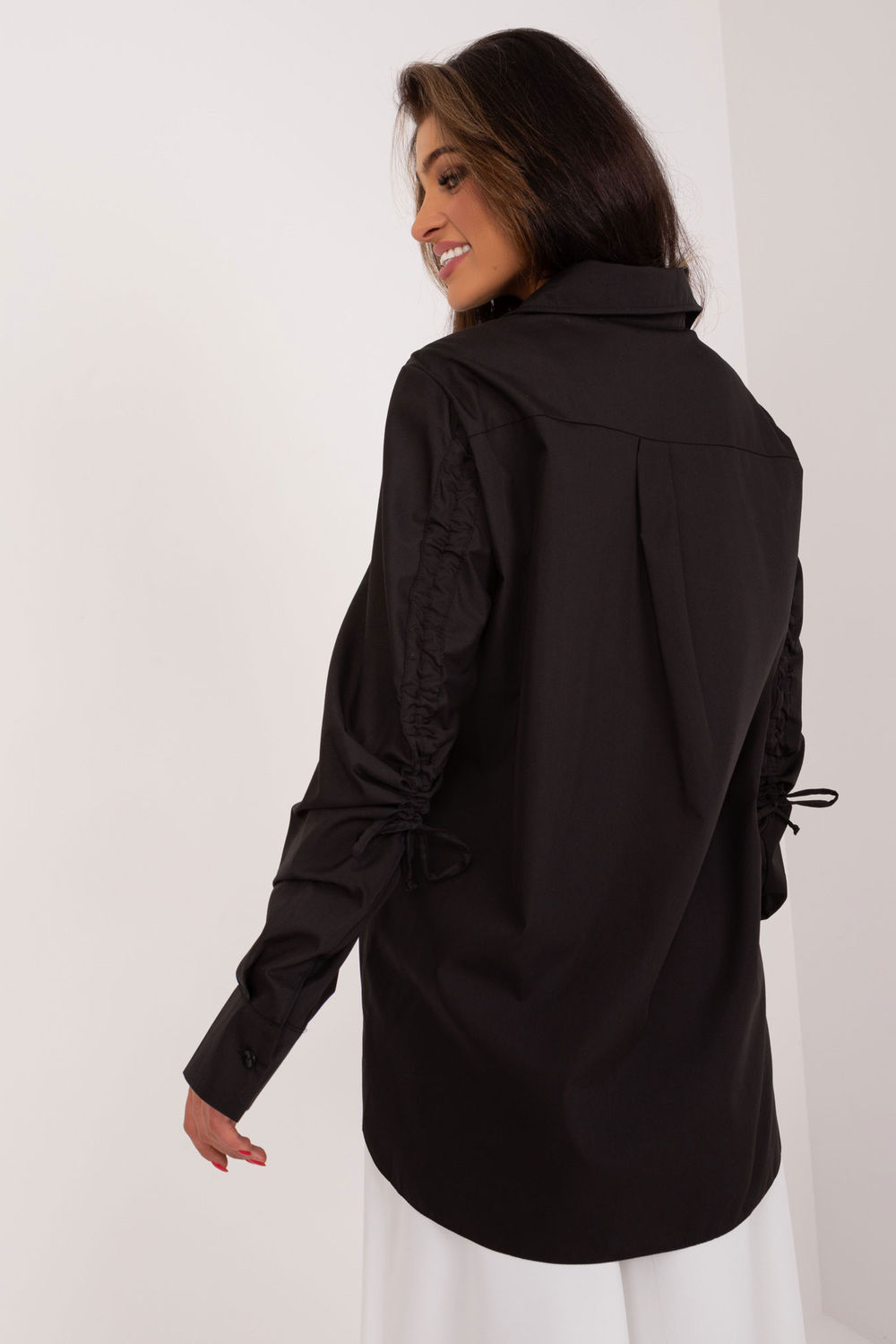 Het casual overhemd met decoratieve ribboord aan de mouwen is een uniek kledingstuk dat comfort combineert met een modieuze look. Dit overhemd is ideaal voor alledaagse situaties en voor op het werk en heeft een doordachte snit die de nadruk legt op casual en stijlvol dragen. De casual stijl geeft het overhemd een lichtgewicht gevoel, waardoor het de perfecte keuze is voor alledaagse uitstapjes of vergaderingen. De decoratieve ribboord aan de mouwen voegt een unieke touch toe en geeft een origineel element aan de outfit. Het overheersende patroon is een effen oppervlak, waardoor het overhemd veelzijdig is en makkelijk te combineren met verschillende kledingstukken. Het shirt is voornamelijk gemaakt van katoen en garandeert comfort en ademend vermogen, zodat het perfect past bij het dagelijkse levenstempo. De lange mouwen met decoratieve ribboorden en kraag benadrukken het moderne ontwerp van het overhemd, terwijl het casual karakter behouden blijft. Dankzij de knoopsluiting is het overhemd gemakkelijk aan te trekken en kun je de halslijn naar wens aanpassen. Het casual overhemd met decoratieve geribde boorden is voor vrouwen die houden van stijlvolle en comfortabele oplossingen in hun dagelijkse kleding. Het voegt niet alleen expressie toe aan casual styling, maar stelt je ook in staat om je eigen stijl en originaliteit uit te drukken.