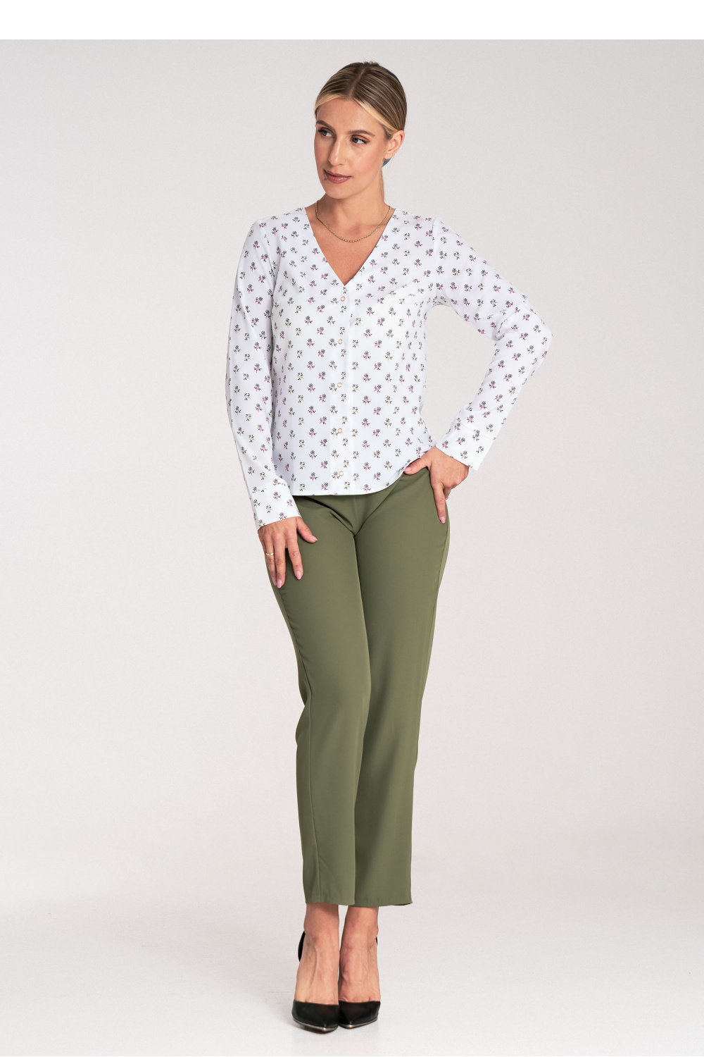 Getailleerd overhemd met lange mouwen zonder kraag. Het shirt heeft een ronde hals en wordt gesloten met drukknopen.