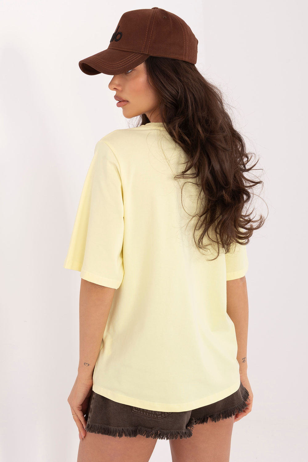 Dames T-shirt in basic of casual stijl is een onmisbaar element van de dagelijkse garderobe. Het gladde model maakt het uiterst veelzijdig en gemakkelijk te stylen, perfect te combineren met zowel jeans als een rok of sportbroek. Gemaakt van een hoogwaardige mix van katoen en elastaan, zorgt voor comfortabel dragen, ventilatie en een zachte pasvorm bij de silhouet. De standaardlengte en korte mouwen maken het model perfect voor dagelijks gebruik, ongeacht het seizoen. Het T-shirt heeft een klassieke, ronde halslijn die de tijdloze en veelzijdige stijl benadrukt.