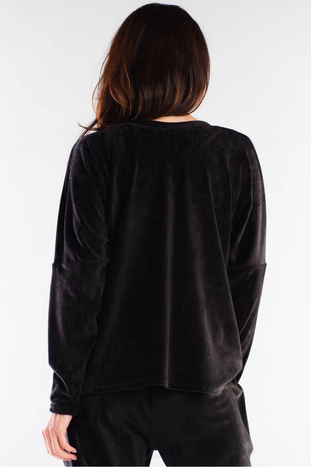 De losse en rechte snit van het sweatshirt past bij een urban styling en past bij elk figuur. Lange, rechte mouwen en de onderkant van het model afgewerkt met boordjes, bovendien een zeer vrouwelijke v-hals. Product ontworpen en vervaardigd in Polen.