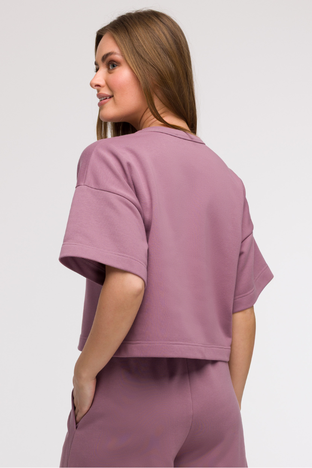 Losse cropped damesblouse is de perfecte keuze voor zomerse, alledaagse outfits. Haar eenvoudige, vierkante snit en lengte tot aan de taille maken het perfect te combineren met shorts, rokken of broeken met een hoge taille. Korte, wijde mouwen en het ontbreken van voering zorgen voor ventilatie en comfort op warmere dagen. De blouse heeft een klassieke, ronde halslijn die een minimalistisch karakter toevoegt. Ontworpen en gemaakt in Polen met oog voor detail, het combineert comfort en stijl. Het is een geweldige basis voor vakantie- en stedelijke outfits.