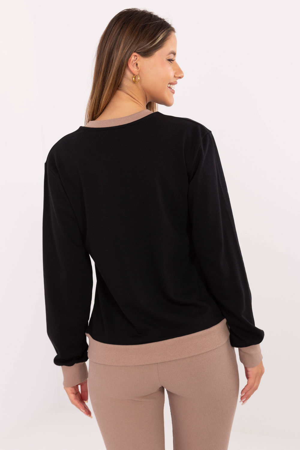 Casual damessweater gemaakt van een zachte mix van katoen en polyester, die comfortabel dragen combineert met een trendy design. De klassieke ronde hals en lange mouwen zorgen voor comfort, terwijl de standaard lengte ervoor zorgt dat de trui perfect past bij dagelijkse outfits. De voorkant is versierd met subtiele borduursels, die het geheel een elegante uitstraling geven, en de contrasterende afwerking voegt een moderne, opvallende touch toe. Een model zonder sluiting, ideaal voor casual outfits voor elke dag.
