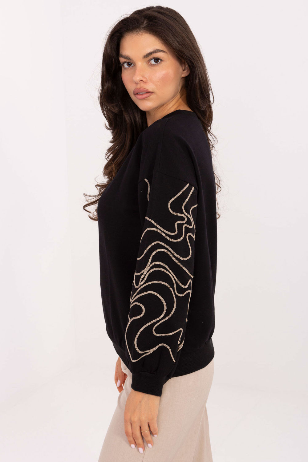 Dames sweatshirt in casual stijl, gemaakt van zachte katoen met een vleugje elastaan, zorgt voor comfortabel dragen en bewegingsvrijheid. Het model met een standaard lengte en een klassieke, ronde hals is een tijdloze basis voor veel outfits. Lange mouwen versierd met borduurwerk over de hele lengte geven het een bijzonder karakter en een vrouwelijk accent. Ideaal voor dagelijks gebruik op het werk, bijeenkomsten of casual weekendoutfits.