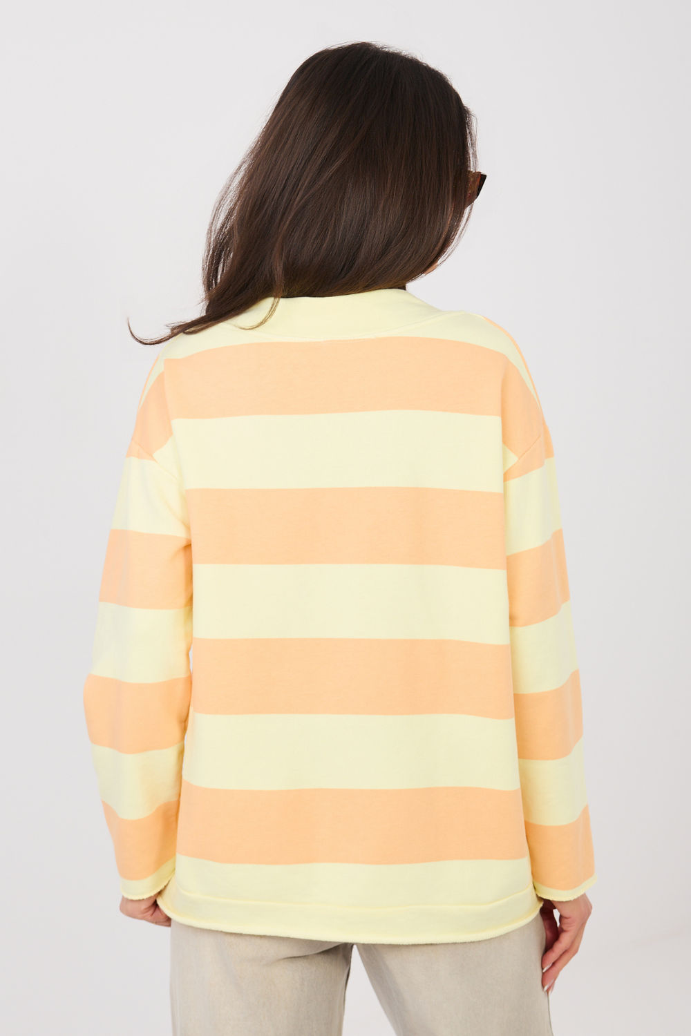 Stijlvolle dames sweater met een casual karakter is een uitstekend voorstel voor dagelijks gebruik. Het zal zowel passen bij stedelijke outfits als bij ontspanning of ontmoetingen met vrienden. Het opvallende patroon met kleurrijke strepen geeft het een modieuze, frisse uitstraling en trekt de aandacht. Het model met standaard lengte zorgt voor comfort en bewegingsvrijheid, terwijl de lange mouwen ervoor zorgen dat de trui perfect is voor koelere dagen. De V-hals benadrukt subtiel de nek en voegt een vrouwelijk karakter toe aan het geheel. De trui heeft geen sluiting, waardoor hij gemakkelijk aan te trekken is en mooi op het lichaam valt. Gemaakt van een hoge kwaliteit mix van katoen en polyester, combineert het zachtheid, ademend vermogen en duurzaamheid van het materiaal. Het is een universeel kledingstuk dat zowel goed zal passen bij jeans als bij stoffen broeken of rokken, waardoor comfortabele en stijlvolle outfits voor elke gelegenheid worden gecreëerd.