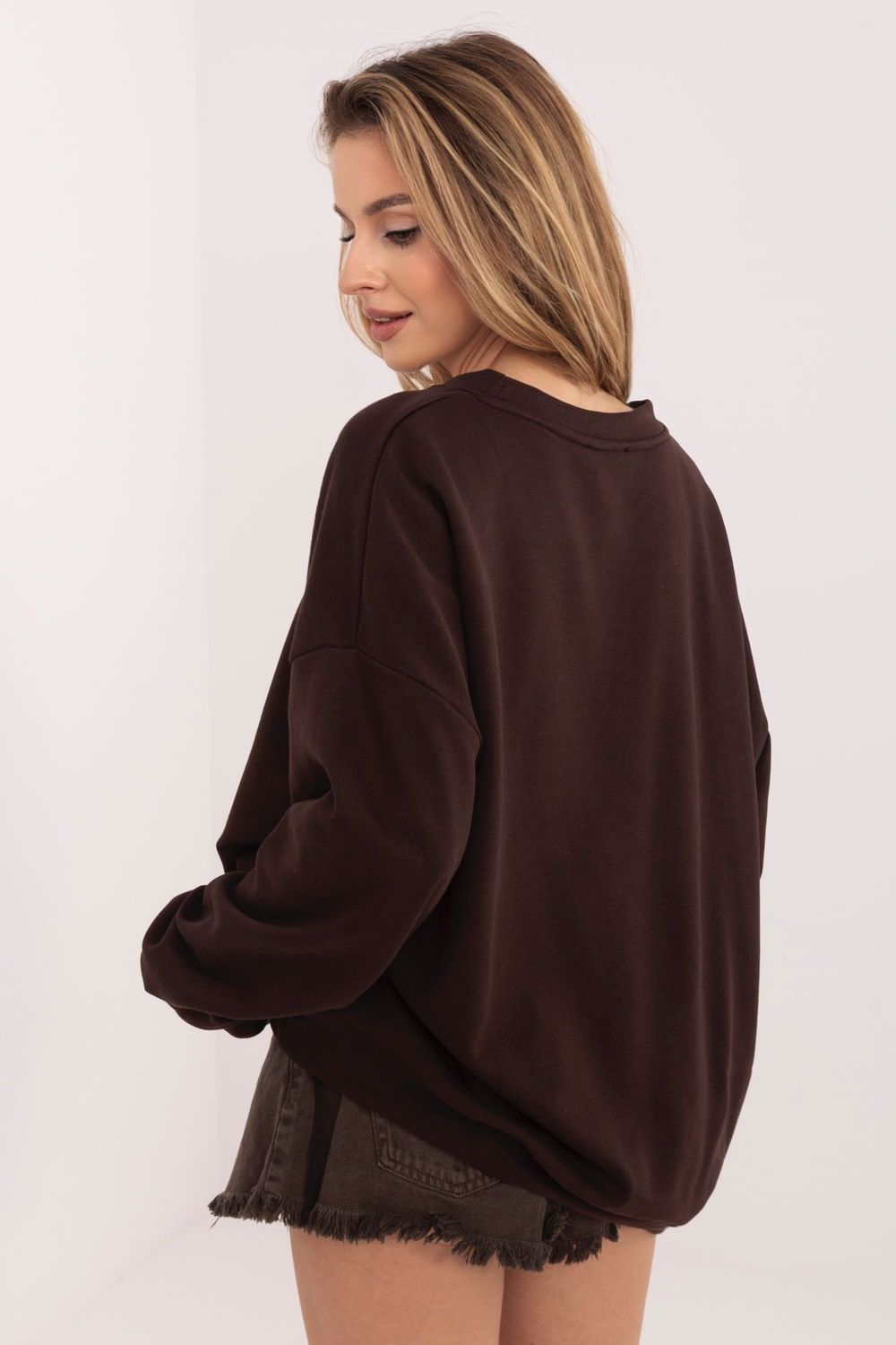 Stijlvolle oversized damesblouse, ideaal voor dagelijkse, casual styling. De losse pasvorm zorgt voor bewegingsvrijheid en hoog draagcomfort, terwijl de standaardlengte ervoor zorgt dat de blouse mooi op het lichaam valt en past bij vele outfits. Het model heeft een klassieke, ronde hals en lange mouwen, waardoor het perfect is voor koelere dagen. Het dominante ontwerpelement zijn geborduurde en verhoogde opschriften aan de voorkant, die de blouse een trendy, moderne uitstraling geven. Gemaakt van hoogwaardig katoen, is de blouse zacht, huidvriendelijk en biedt de hele dag comfort. Het model zonder sluiting benadrukt de relaxte, sportief-casual stijl, waardoor het goed te combineren is met zowel jeans als leggings of sweatpants.