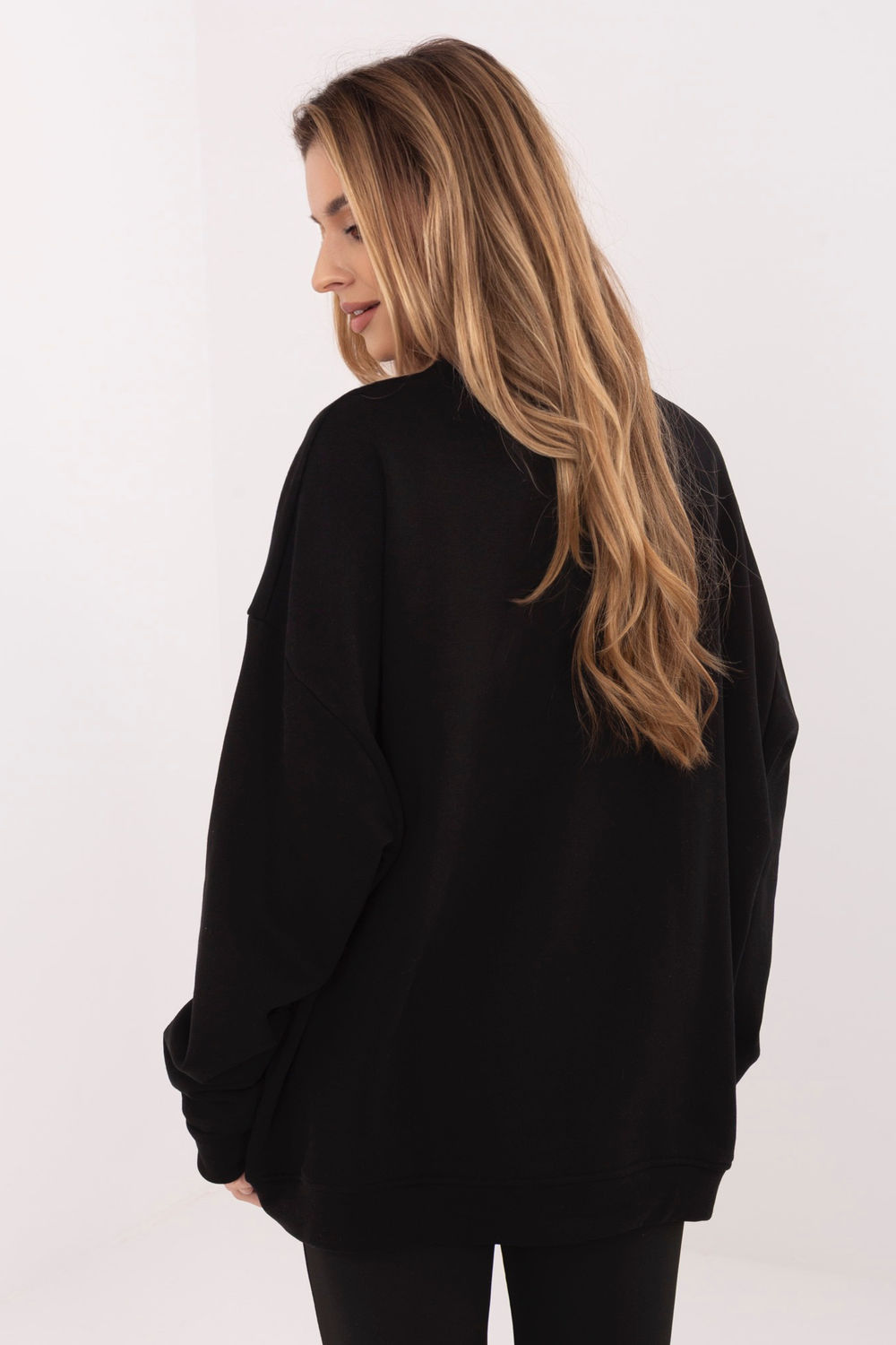 Stijlvolle oversized dames trui, ideaal voor dagelijkse, casual outfits. De losse pasvorm zorgt voor bewegingsvrijheid en hoog draagcomfort, terwijl de standaard lengte ervoor zorgt dat de trui mooi valt op het silhouet en past bij vele outfits. Het model heeft een klassieke, ronde hals en lange mouwen, waardoor het perfect is voor koelere dagen. Het dominante element van het ontwerp zijn geborduurde en verhoogde opschriften aan de voorkant, die de trui een trendy, moderne uitstraling geven. Gemaakt van hoogwaardig katoen is de trui zacht, huidvriendelijk en zorgt voor comfort gedurende de hele dag. Het model zonder sluiting benadrukt de relaxte, sportief-casual stijl, waardoor het goed te combineren is met zowel jeans als leggings of joggingbroeken.