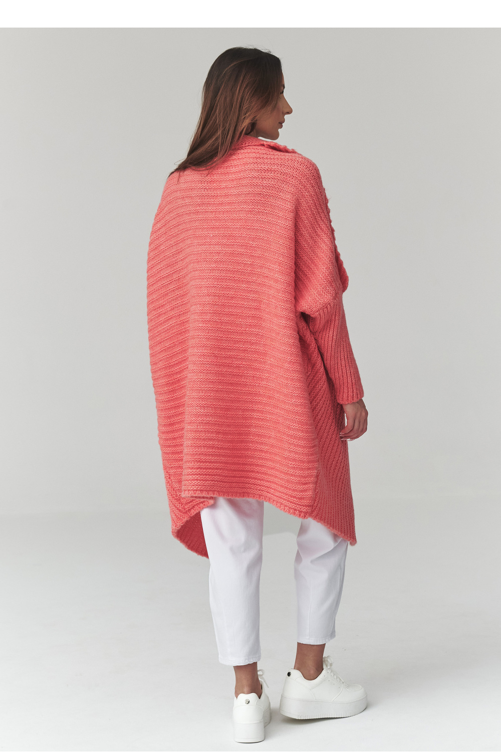 Deze lange dames trui is een uitstekende keuze voor vrouwen die comfort, stijl en tijdloos design waarderen. Het model in de vorm van een dames vest onderscheidt zich door een losse pasvorm, waardoor het perfect op het lichaam valt en volledige bewegingsvrijheid biedt. De trendy oversized trui is perfect voor zowel alledaagse outfits als meer elegante combinaties. Gemaakt van aangename gebreide stof, biedt de dames cardigan comfortabel draagcomfort en de juiste warmte op koelere dagen. Het kenmerkende materiaal en langere model geven de lange oversized trui een unieke uitstraling, waardoor hij perfect past bij broeken, leggings of jurken. Deze veelzijdige dames trui voor dagelijks gebruik kan gemakkelijk worden gecombineerd met verschillende outfits, van casual tot meer stedelijk. Het is het ideale kledingstuk voor vrouwen die op zoek zijn naar een modieuze dames vest dat comfort en stijl combineert.