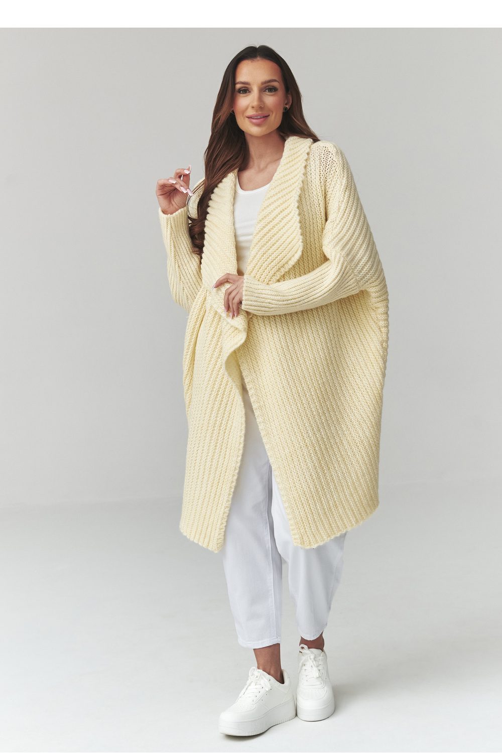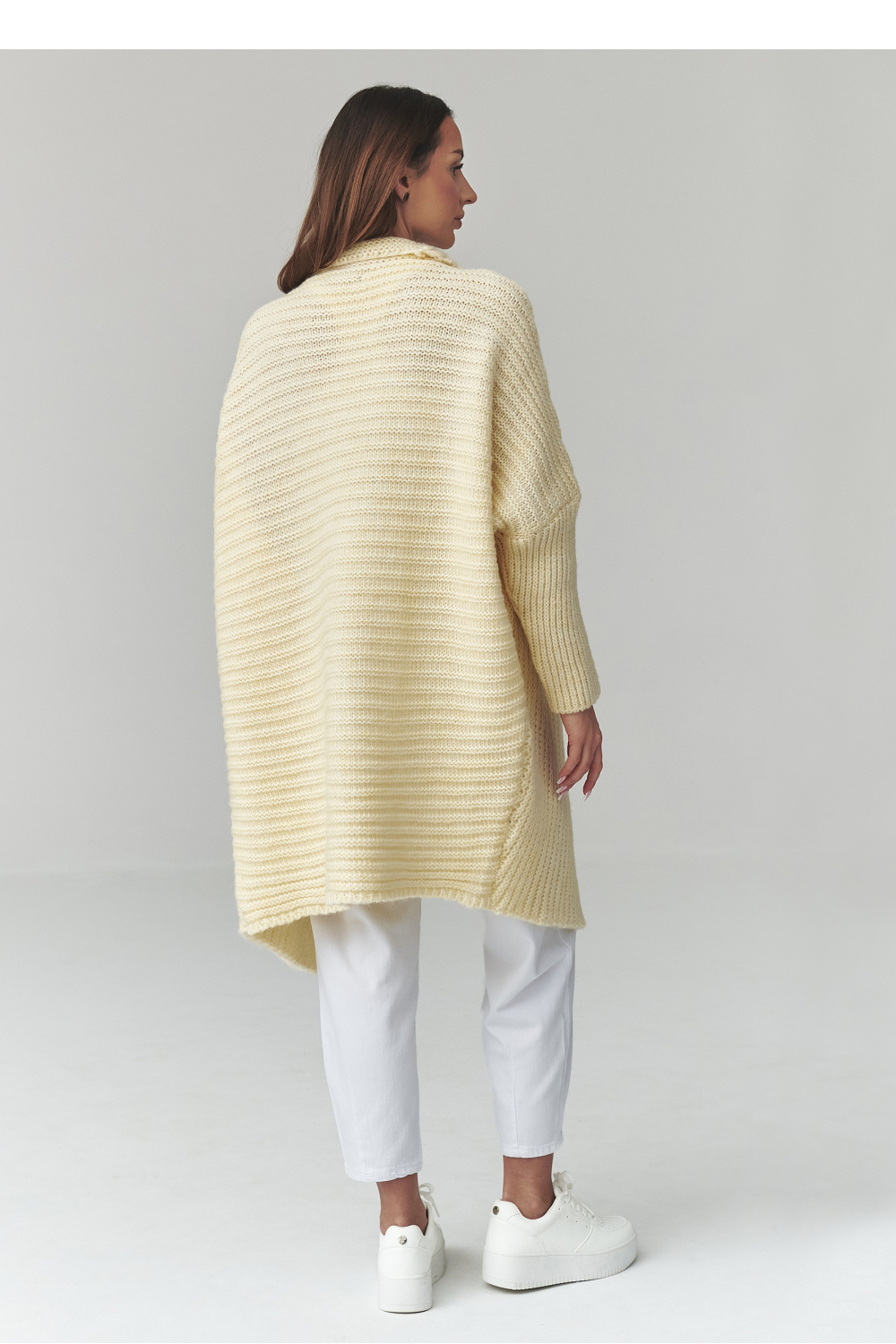 Deze lange dames trui is een uitstekende keuze voor vrouwen die comfort, stijl en tijdloos design waarderen. Het model in de vorm van een damesvest onderscheidt zich door zijn losse pasvorm, waardoor het perfect op het lichaam valt en volledige bewegingsvrijheid biedt. De modieuze oversized trui is geschikt voor zowel alledaagse outfits als meer elegante combinaties. Gemaakt van aangenaam aanvoelende gebreide stof, biedt de dames cardigan comfortabel draagcomfort en warmte op koelere dagen. Het kenmerkende materiaal geeft het een unieke uitstraling, en door de langere lengte past de lange oversized trui perfect bij broeken, leggings of jurken. Deze veelzijdige dames trui voor dagelijks gebruik kan eenvoudig worden aangepast aan vele outfits, van casual tot meer stedelijke looks. Het is een ideaal kledingstuk voor vrouwen die op zoek zijn naar een modieuze damesvest die comfort en stijl combineert.